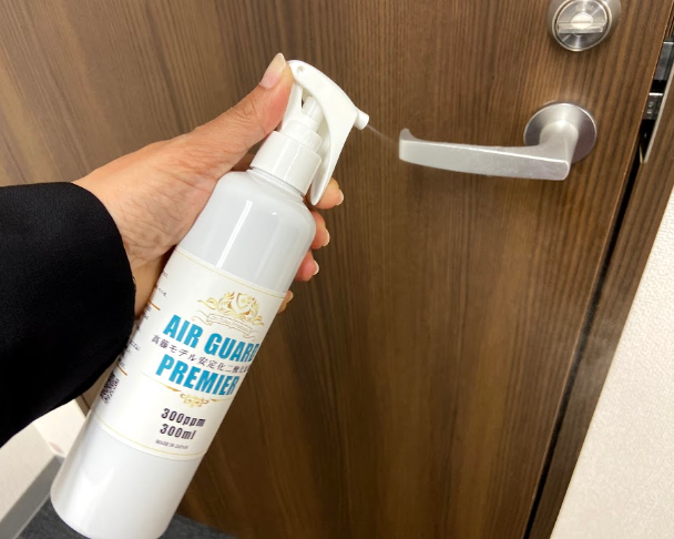 ドアノブやスイッチトイレや蛇口等、多くの人が触れる場所に直接噴霧。